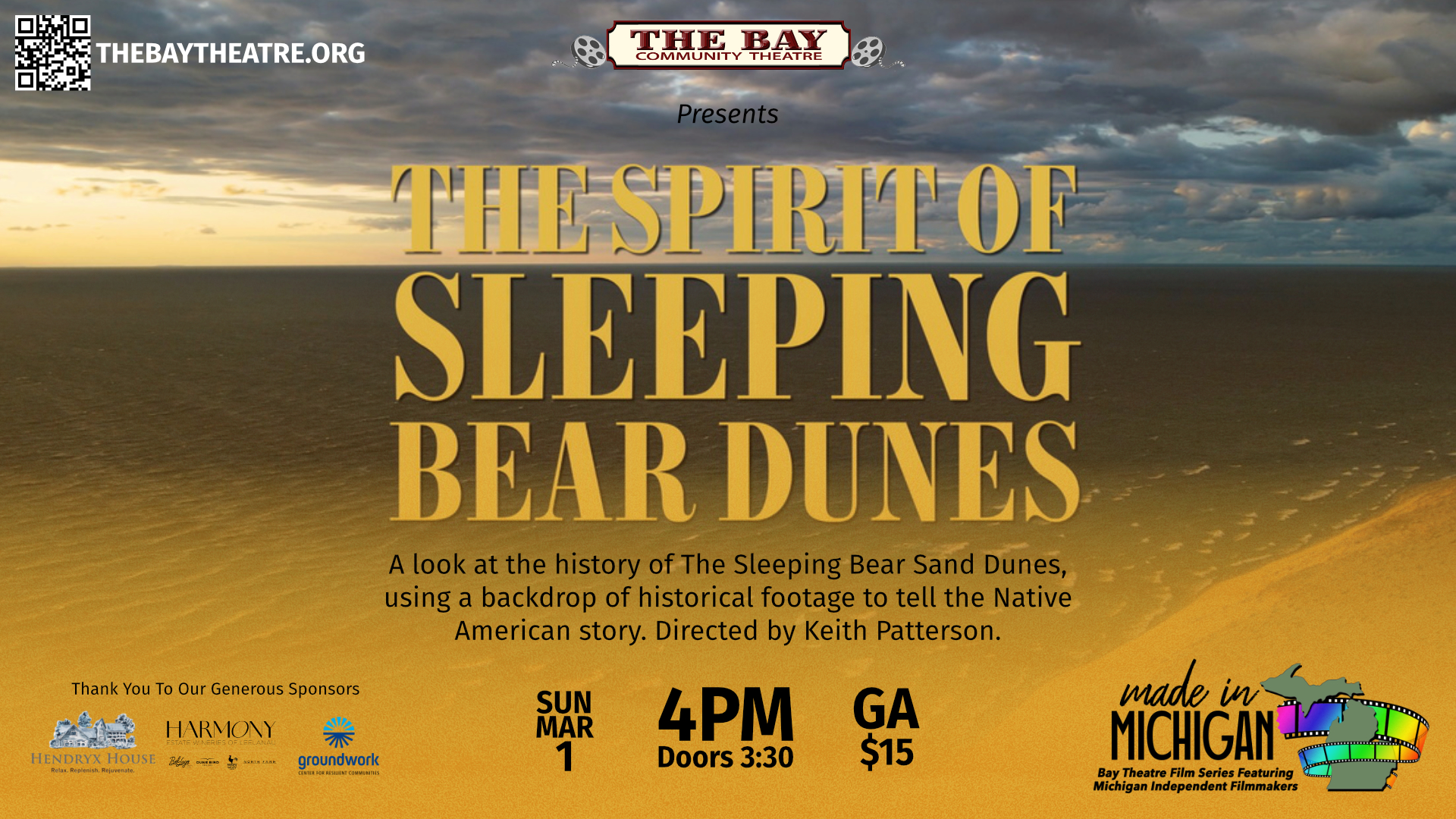 The Spirit of Sleeping Bear is a visual love letter to the towering bluffs and cobalt waters of Lake Michigan’s northeastern shore. The film explores the profound connection between the landscape and the people who have called it home for centuries—from the Anishinaabe tribes to modern-day conservationists. Join filmmaker, Keith Patterson at the Bay!DocumentaryPT50M2026-03-01Keith Patterson